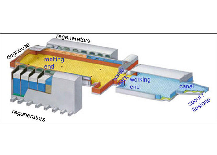 300TPD کوره بازسازی شده متقاطع دستگاه ذوب شیشه بزرگ